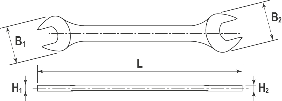 Универсальный ключ для работ с крепежом, имеющим доступ лишь с одной стороны. Рожковые гаечные ключи изготовлены из высоколегированной стали, по стандарту ANSI/ASME B107.6 и соответствует требованиям ГОСТ 2839-80. Чечевичное сечение рукоятки с увеличенной толщиной ребра позволяет развить более высокий крутящий момент по сравнению с ключами двутаврового сечения европейского типа. Устойчивое к механическому воздействию и агрессивным средам зеркальное, трехслойное, хромоникелевое покрытие облегчает удаление загрязнений с рожковых ключей после работы. Малое количество пятен и площади контакта несколько ограничивает применение ключа с высоконагруженными резьбовыми соединениями.