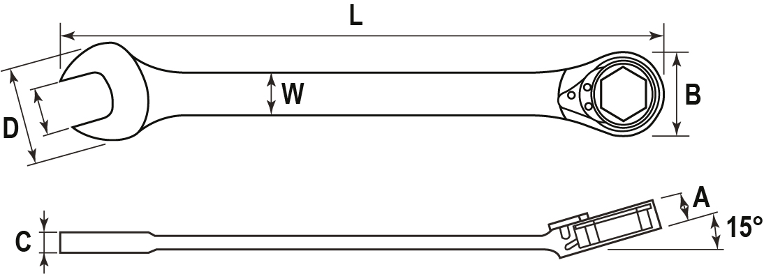 Применяется для обслуживания крепежа при свободном вращении. Малый, 5°, обратный ход делает ключ незаменимым в ограниченном рабочем пространстве. Храповой механизм с колесом в 72 зуба обеспечивает высокий передаваемый крутящий момент благодаря применяемой хромованадиевой стали, закаленной особым способом. Механизм переключения направления вращения упрощает применение изделия, а изогнутая под углом 15° накидная часть - доступ. Ключ изготовлен по стандарту ANSI, имеет трехслойное хромоникелевое покрытие, зеркально отполирован.