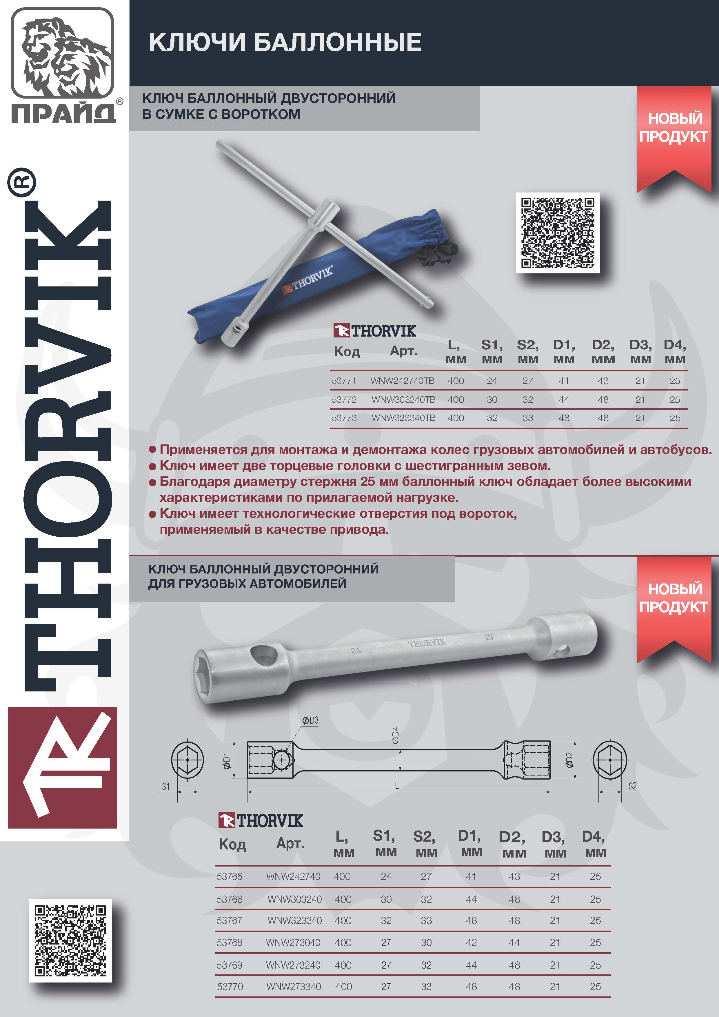 WNW242740TB Ключ баллонный двусторонний для грузовых а/м, 24х27 мм, 400 мм с воротком 600 мм, в сумке Thorvik