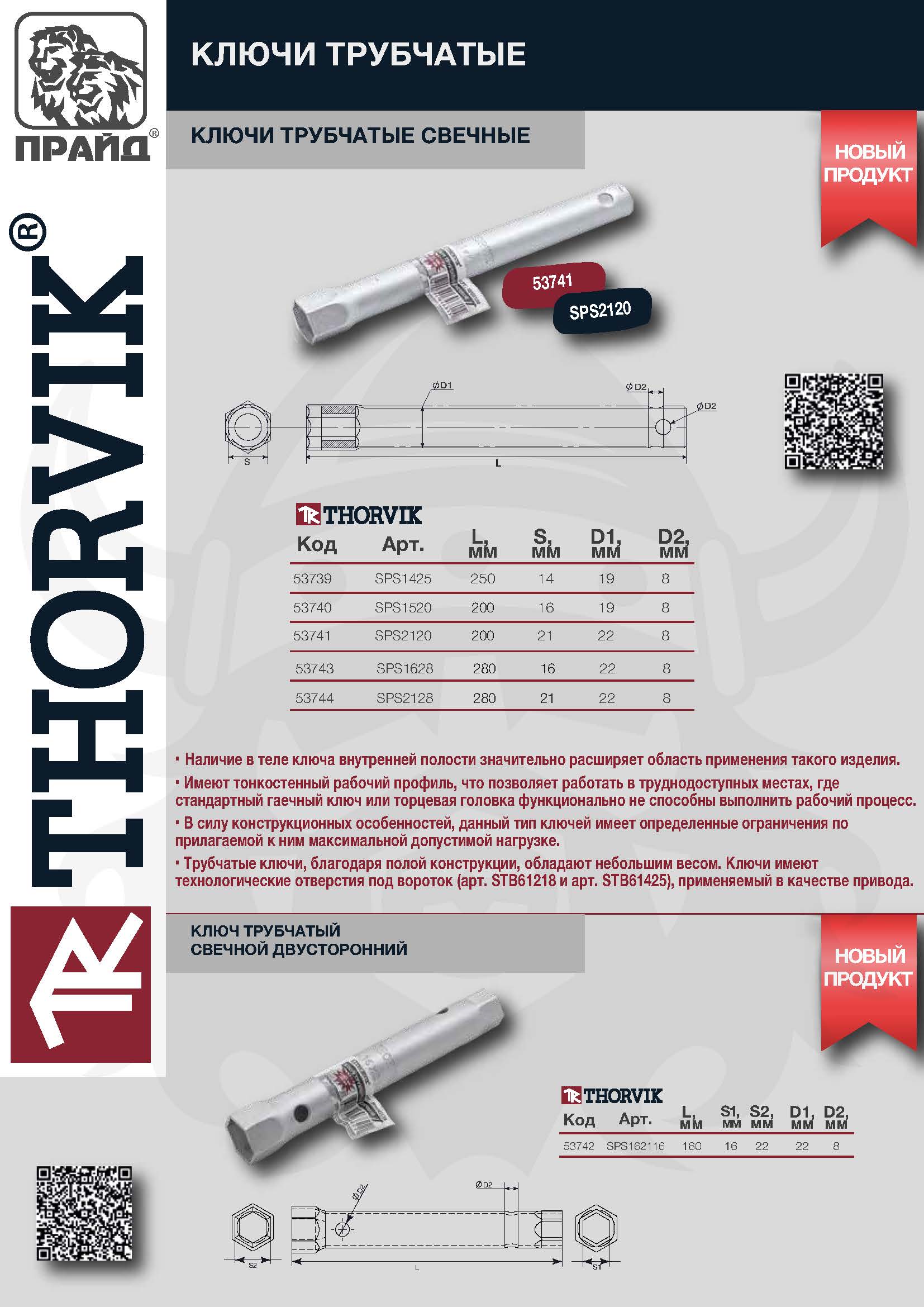 SPS2120 Ключ трубчатый свечной, 21 мм, 200 мм Thorvik
