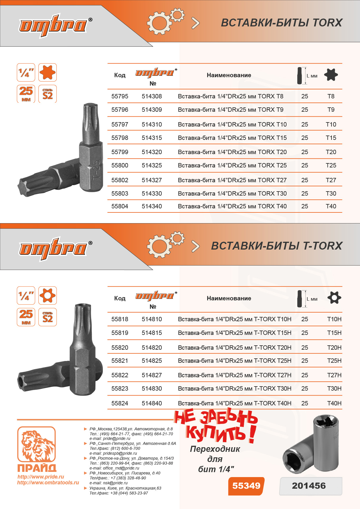 Ombra 514325 Вставка-бита 1/4"DR TORX®, T25, 25 мм 514325