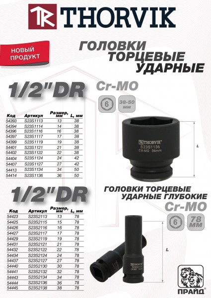 S23S1116 Головка торцевая ударная 1/2"DR, 16 мм Thorvik