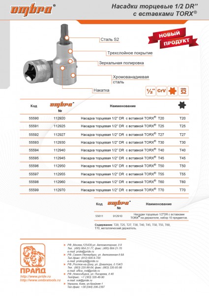 Ombra 112930 Насадка торцевая 1/2" DR с вставкой-битой TORX®, Т30 112930