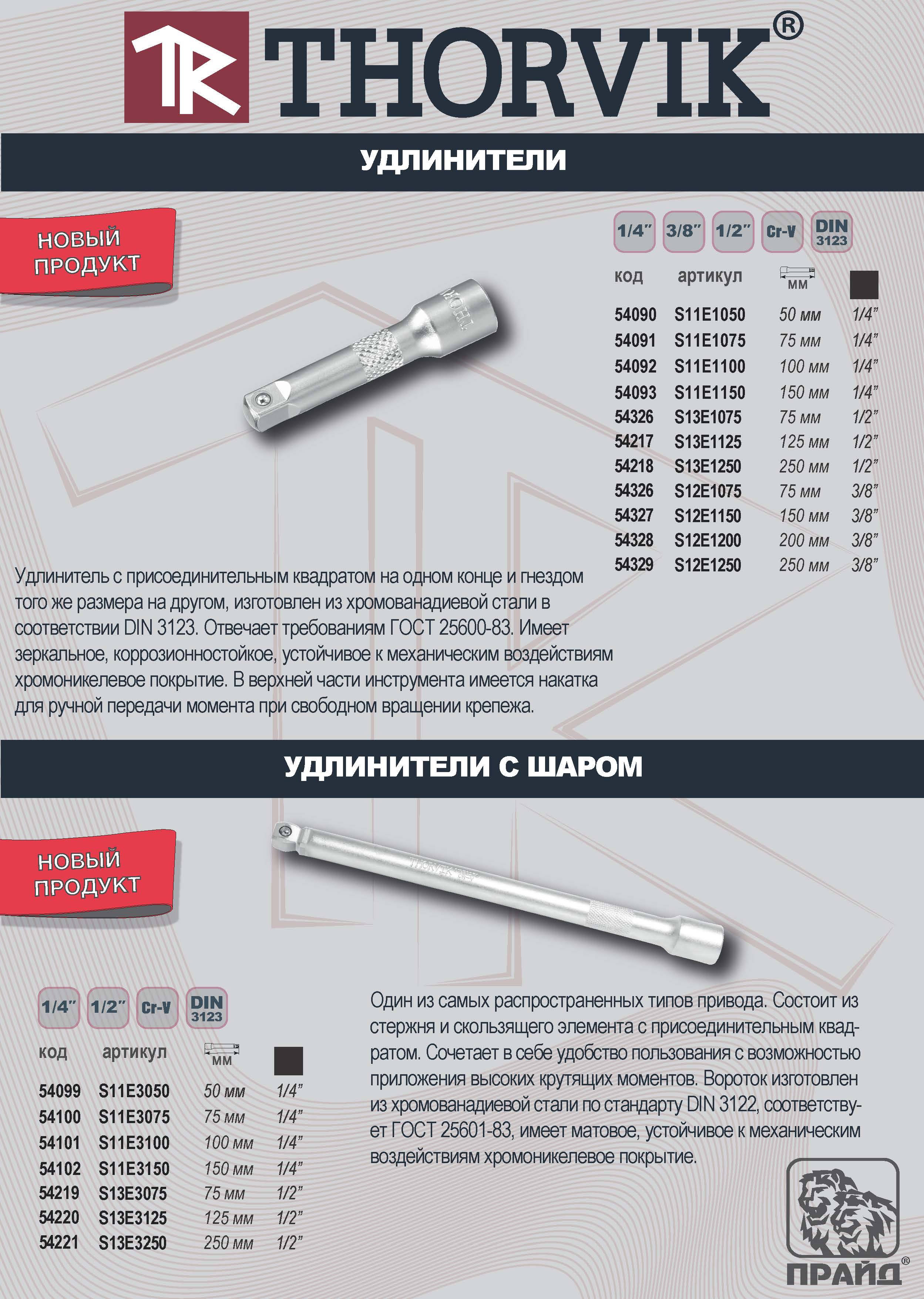 S13E1075 Удлинитель 1/2"DR, 75 мм Thorvik