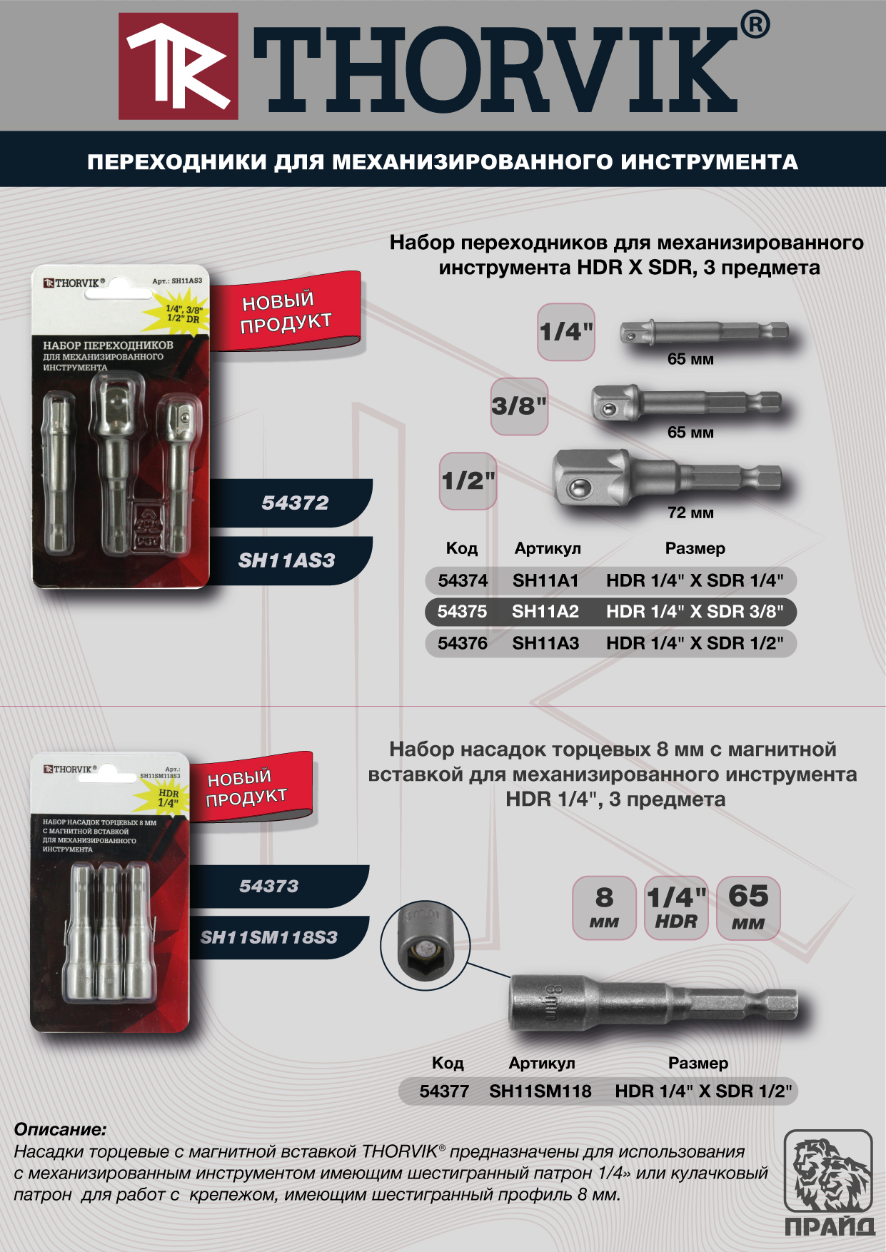 SH11AS3 Набор переходников для механизированного инструмента HDR X SDR, 3 предмета Thorvik