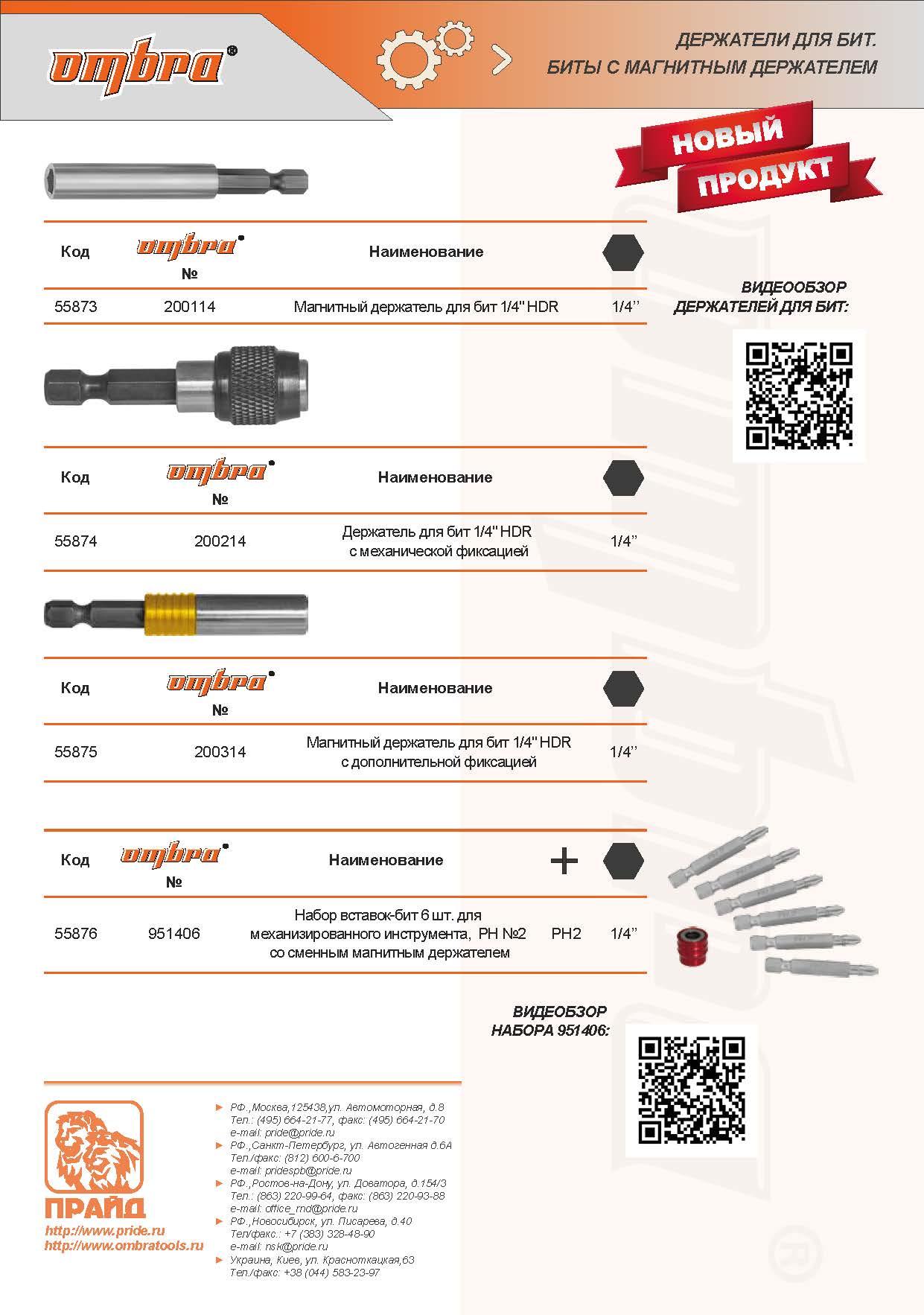 Ombra 200214 Держатель для вставок-бит 1/4"HDR с механической фиксацией, 50 мм 200214