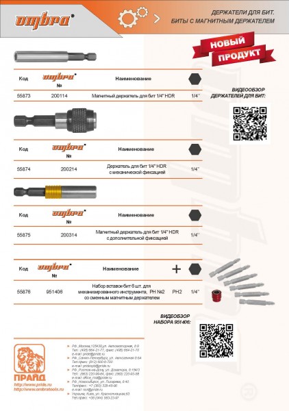 200314 Держатель для вставок-бит 1/4"HDR магнитный с дополнительной фиксацией, 67 мм Ombra