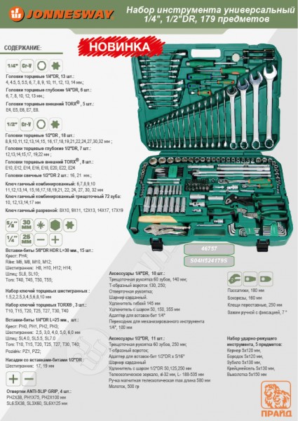 Набор инструмента универсальный 1/4", 1/2"DR, 179 предметов.