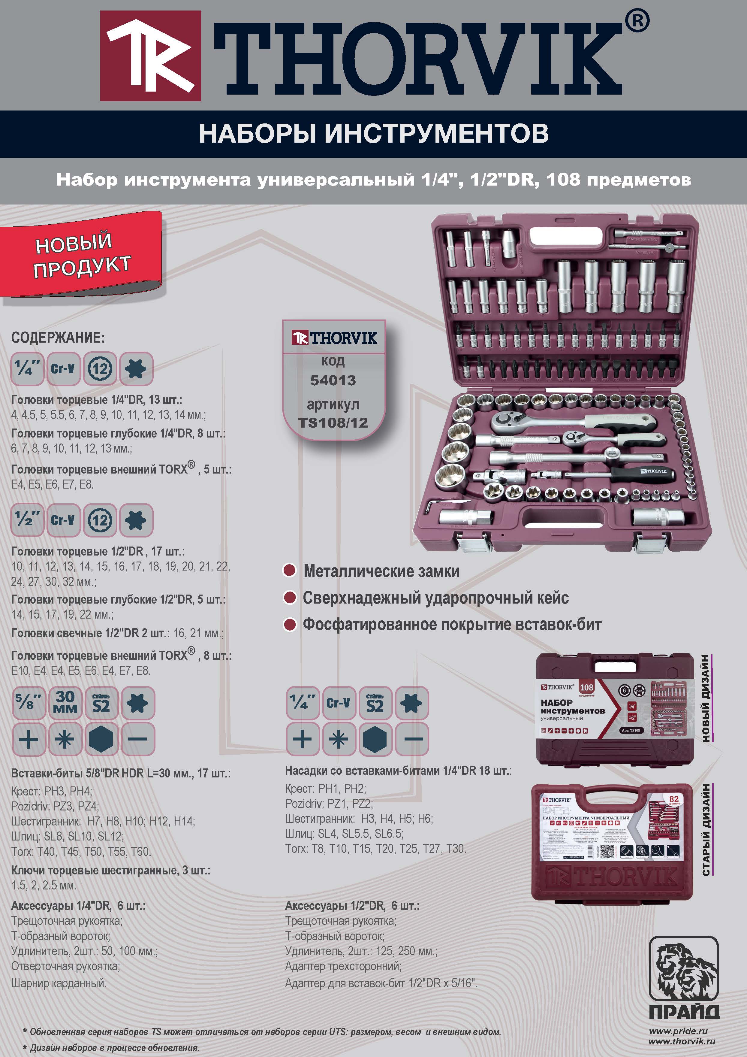 TS108/12 Набор инструмента универсальный 1/4", 1/2"DR с головками торцевыми 12-гранными, 108 предметов Thorvik