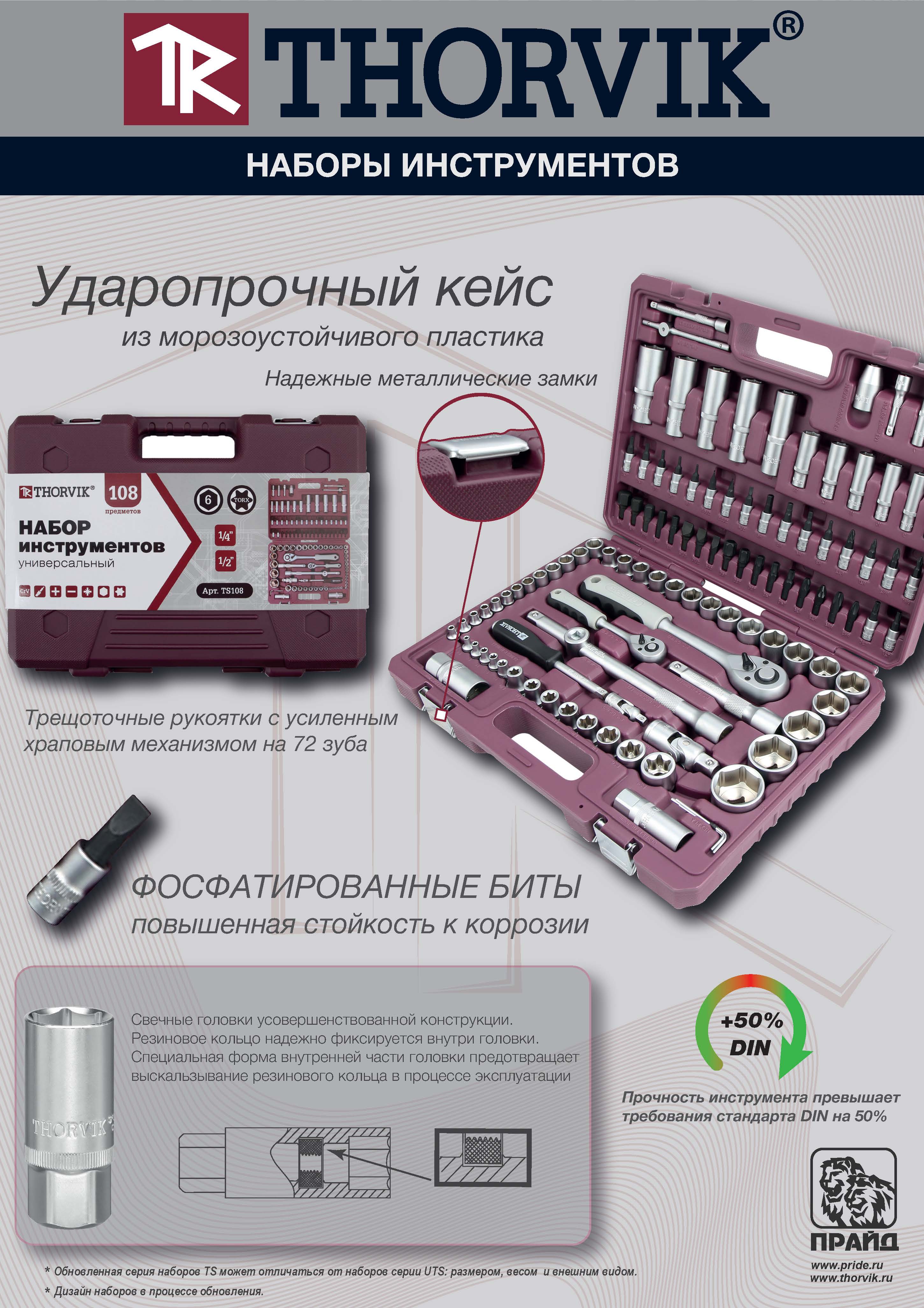 Инструментальные наборы Thorvik - это высокое качество изделий, входящих в состав наборов, удобные прочные кейсы для хранения, оптимальная комплектация позволяющая удовлетворить потребность мастера при обслуживании техники и обеспечить всем необходимым рабочее место при производстве комплексных слесарно-монтажных или механосборочных работ. Наборы Thorvik имеют ударопрочный морозоустойчивый кейс с надежными металлическими замками, фосфатированное покрытие вставок бит обеспечит дополнительную стойкость к коррозии.
