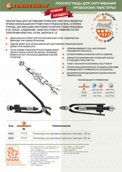 P7716 Плоскогубцы для скручивания проволоки (твистеры), 160 мм Jonnesway