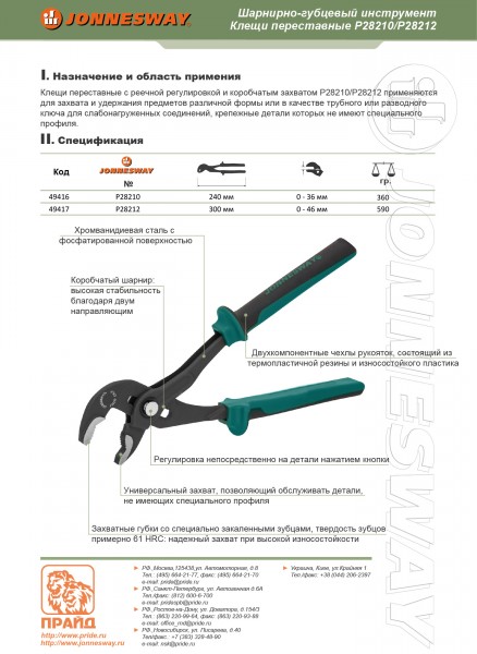 P28210 Клещи переставные с реечной регулировкой, коробчатым захватом и двухкомпонентными рукоятками, 250 мм, 0-36 мм Jonnesway