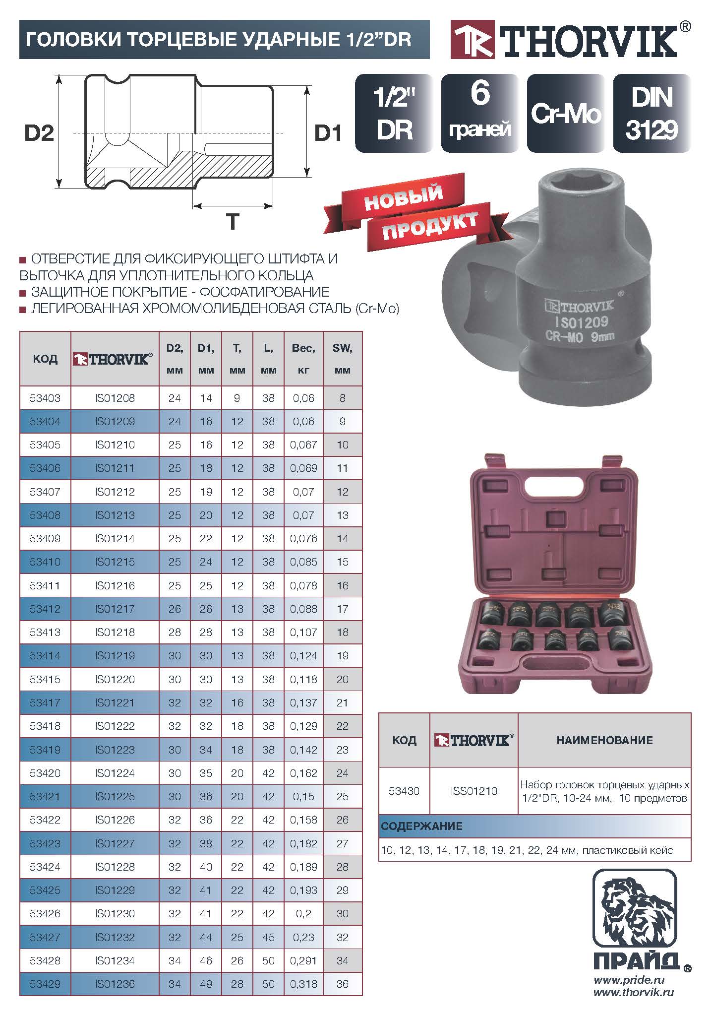IS01227 Головка торцевая ударная 1/2"DR, 27 мм Thorvik