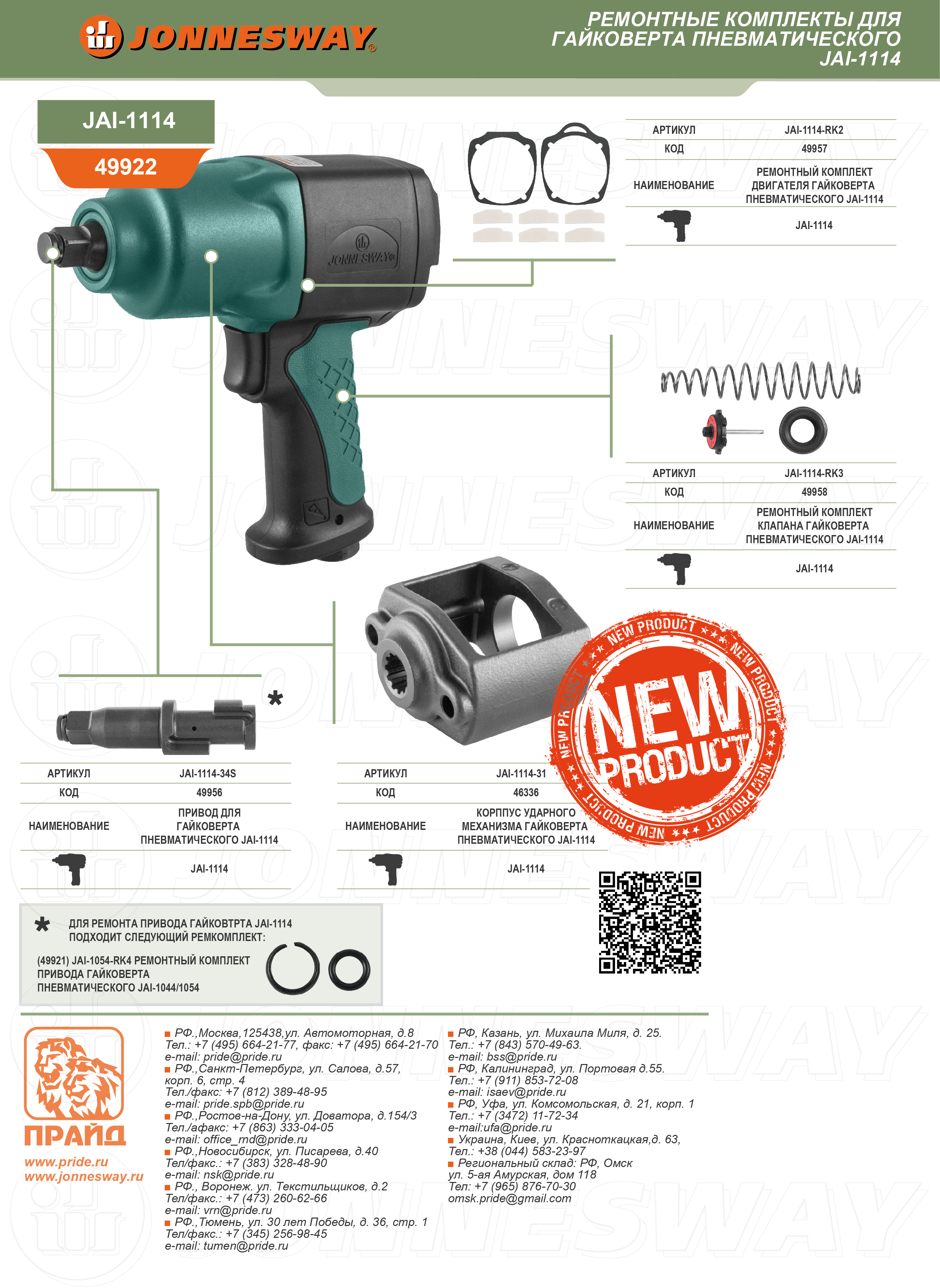 JAI-1114-34S Привод для гайковерта пневматического JAI-1114 в сборе Jonnesway