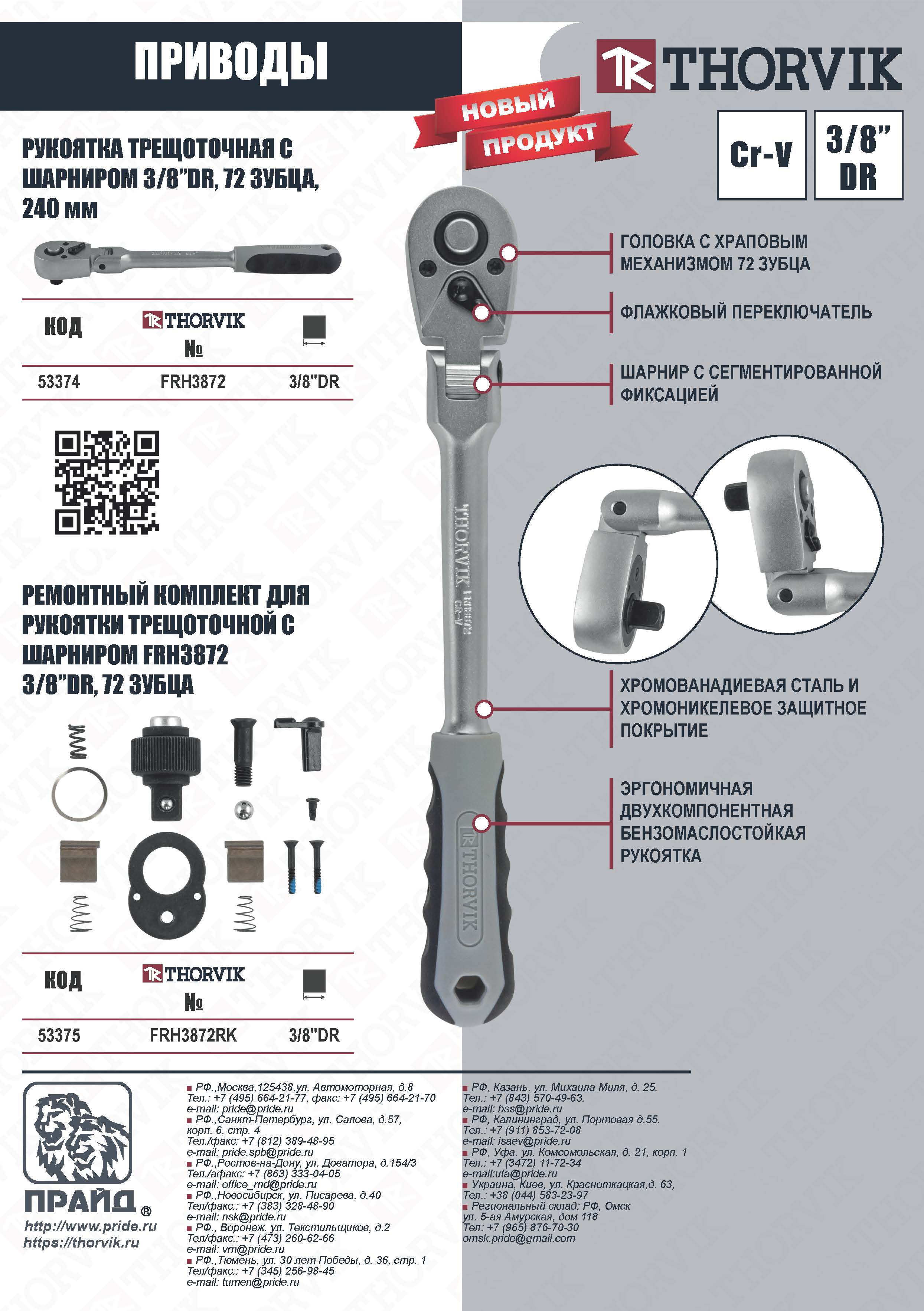 FRH3872RK Ремонтный комплект для рукоятки трещоточной с шарниром FRH3872, 3/8"DR, 72 зубца Thorvik
