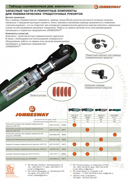 JAR-1012-RK1 Кривошип для трещотки рукоятки трещеточной пневматической JAR-1012 Jonnesway