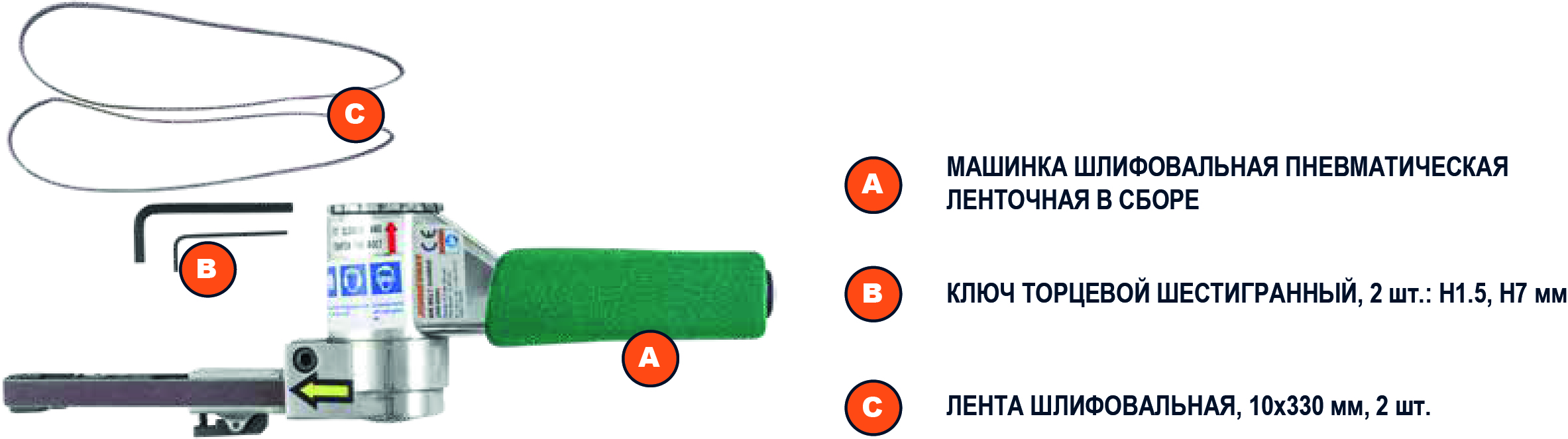 Машинка шлифовальная пневматическая, ленточная, 16000 об./мин., 10х330 мм. Шлифмашины ленточного типа отличаются хорошей компактностью, высокой производительностью и прекрасно подходят для работы в зонах с ограниченным доступом.