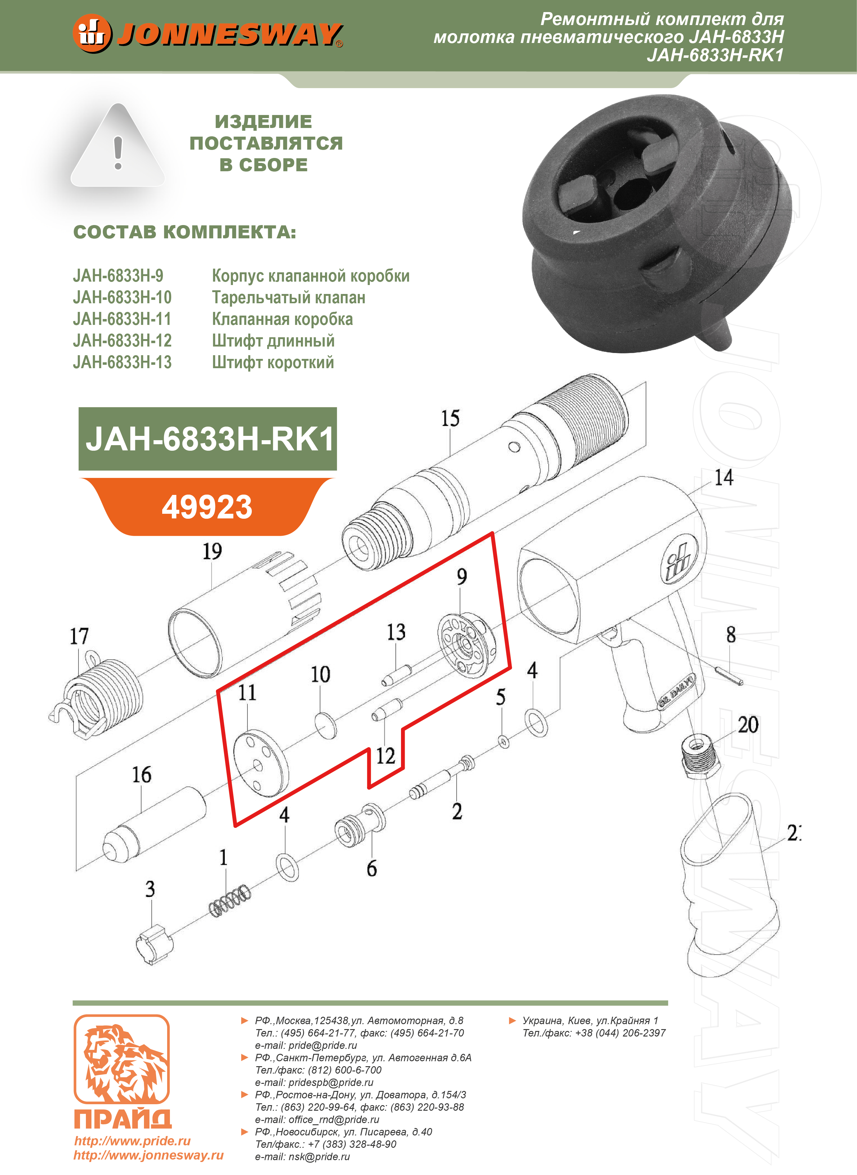 JAH-6833H-RK1 Ремонтный комплект для молотка пневматического JAH-6833H Jonnesway