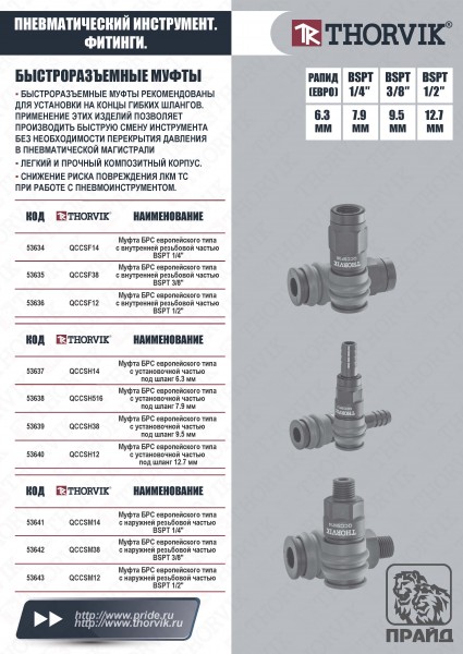 Thorvik QCCSM14 Муфта БРС европейского типа с наружней резьбовой частью BSPT 1/4" QCCSM14