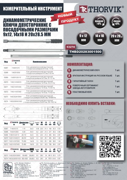 Динамометрические ключи  THORVIK внесены в ГРСИ (Государственный реестр средств измерений), присвоен регистрационный номер 90844-23 в Государственном реестре средств измерений по приказу Росстандарта №2779 от 22.12.2023 г.