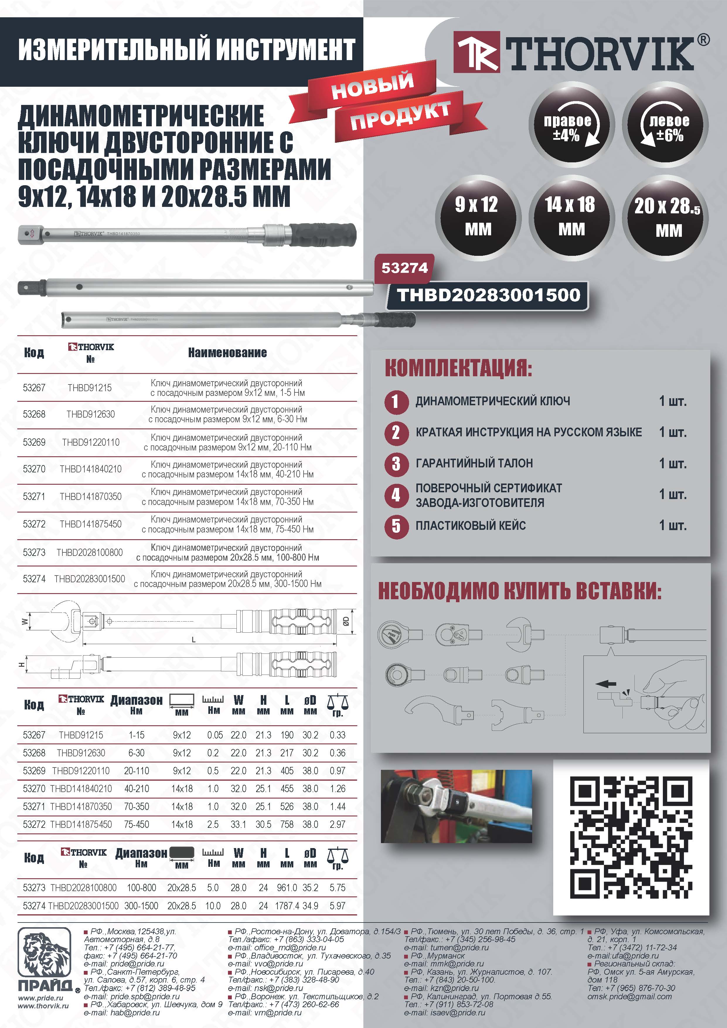 Динамометрические ключи THORVIK предназначены для проведения слесарно-монтажных работ с крепежом любого присоединительного профиля с различным крутящим моментом. Применяются при обслуживании резьбовых крепежных элементов как с правым, так и с левым вращением.