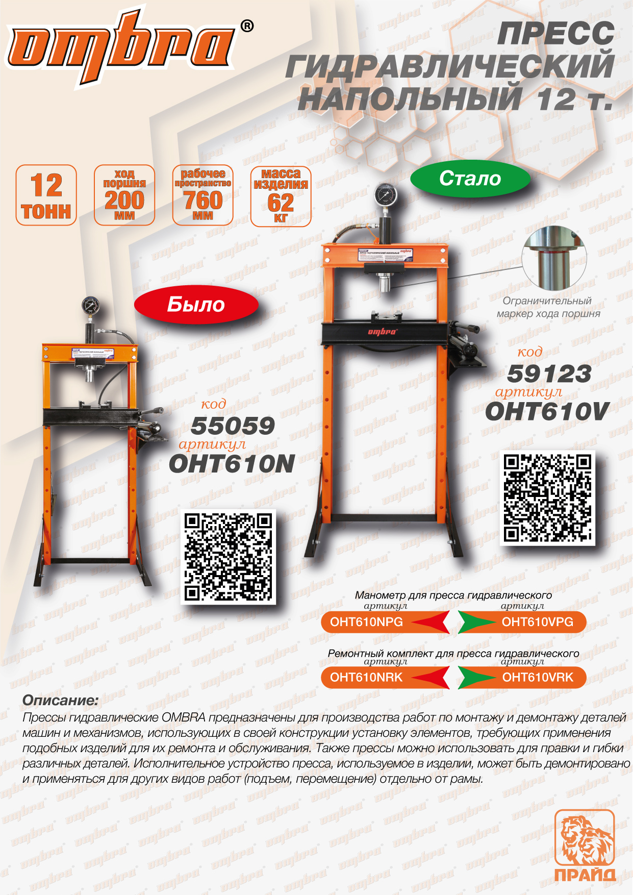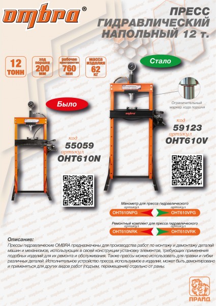 Ombra OHT610V Пресс гидравлический напольный 12 т OHT610V