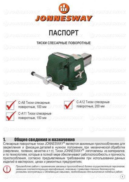 Тиски слесарные поворотные, 100 мм. Тиски Jonnesway изготовлены из материалов и по технологиям, которые в полной мере обеспечивают работоспособность и прочность приспособления, согласно предъявляемым требованиям при использовании данных изделий в мастерских, цехах и ремонтных предприятиях.