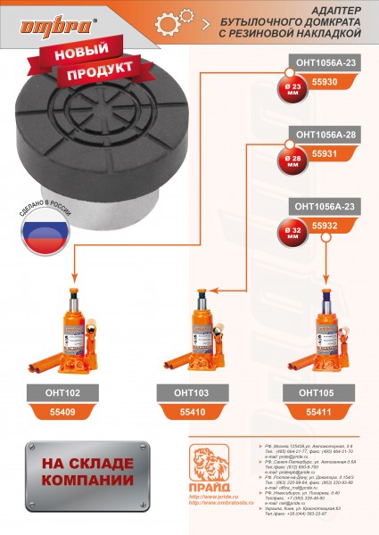 OHT1056A-23 Адаптер бутылочного домкрата с резиновой накладкой для штока D-23мм Ombra