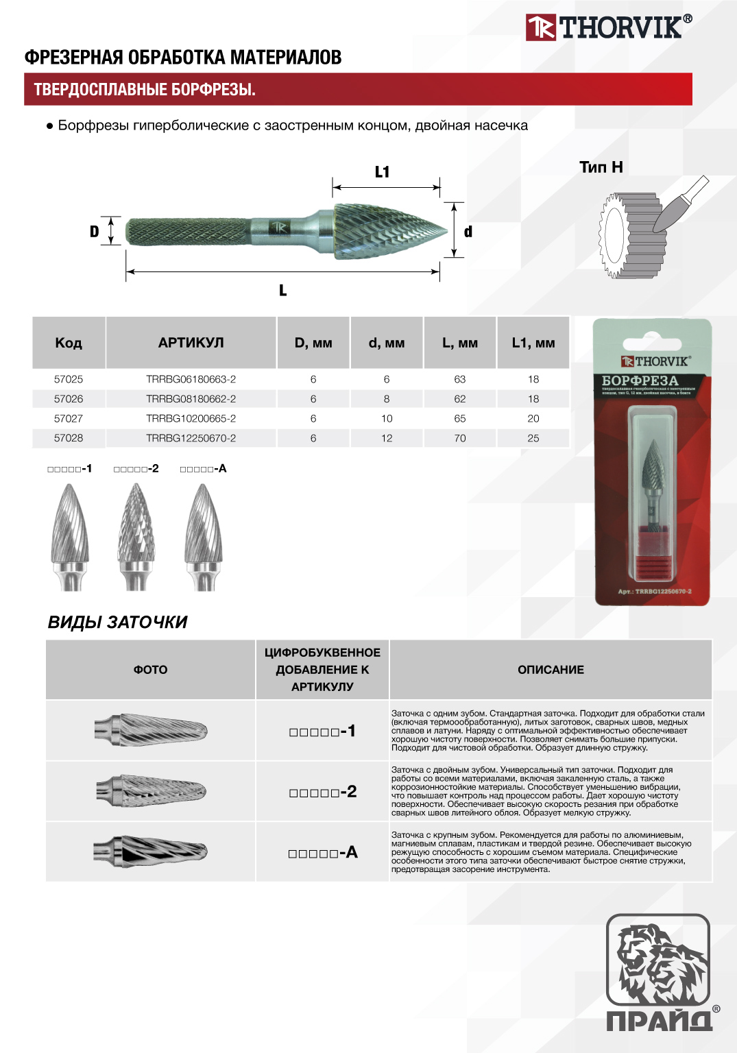 TRRBG10200665-2 Борфреза твердосплавная гиперболическая с заостренным концом, тип G, 10 мм, двойная насечка, в боксе Thorvik