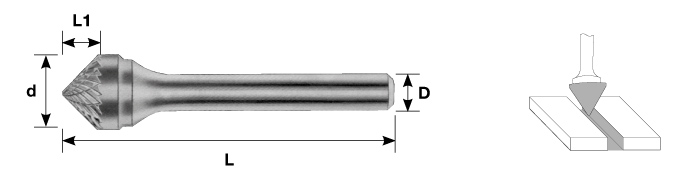 Carbon CRUBSK06251261-2 Борфреза твердосплавная коническая 90°, тип K, 25 мм, двойная насечка, хвостовик 6 мм, в боксе CRUBSK06251261-2