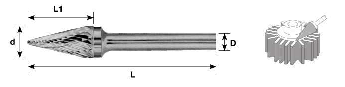 Борфреза твердосплавная коническая, тип M, 10 мм, двойная насечка, хвостовик 6 мм, в боксе Carbon