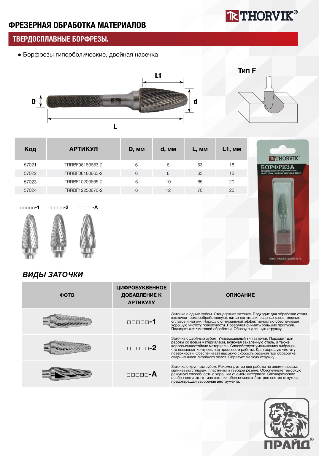 TRRBF10200665-2 Борфреза твердосплавная гиперболическая, тип F, 10 мм, двойная насечка, в боксе Thorvik