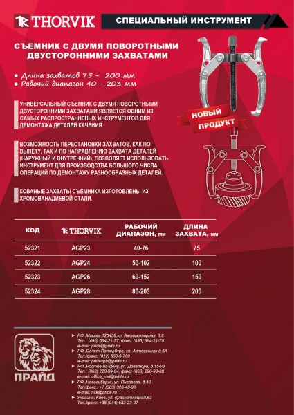 AGP26 Съемник с двумя поворотными двусторонними захватами 150 мм, диапазон захватов 60-152 мм Thorvik
