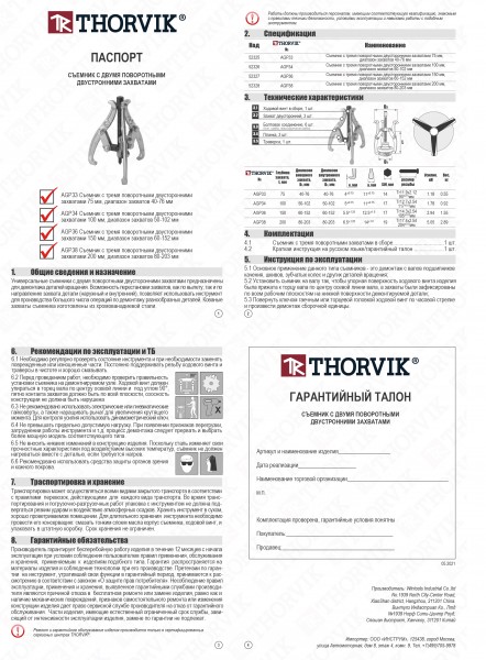3.2 Производитель гарантирует бесперебойное функционирование изделий торговой марки THORVIK® в течение ДЕСЯТИ лет с начала эксплуатации всех типов инструмента, за исключением тех групп инструмента, которые перечислены в п. 3.4.