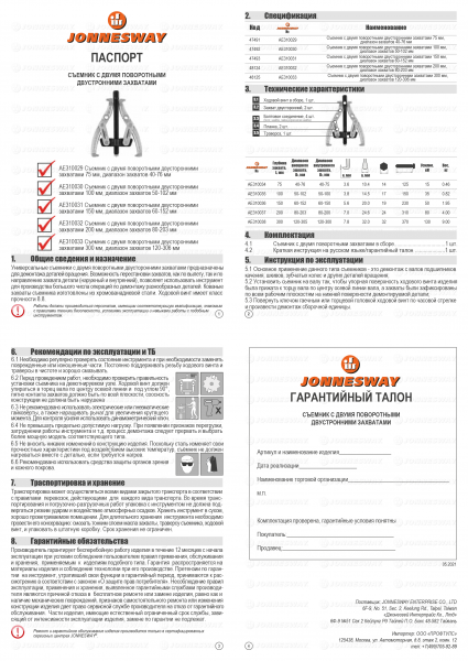 5.4 В случае обнаружения неисправности, Вы можете обратиться в региональные представительства или авторизованные сервисные центры торговых марок JONNESWAY®, OMBRA®, THORVIK®, CARBON®