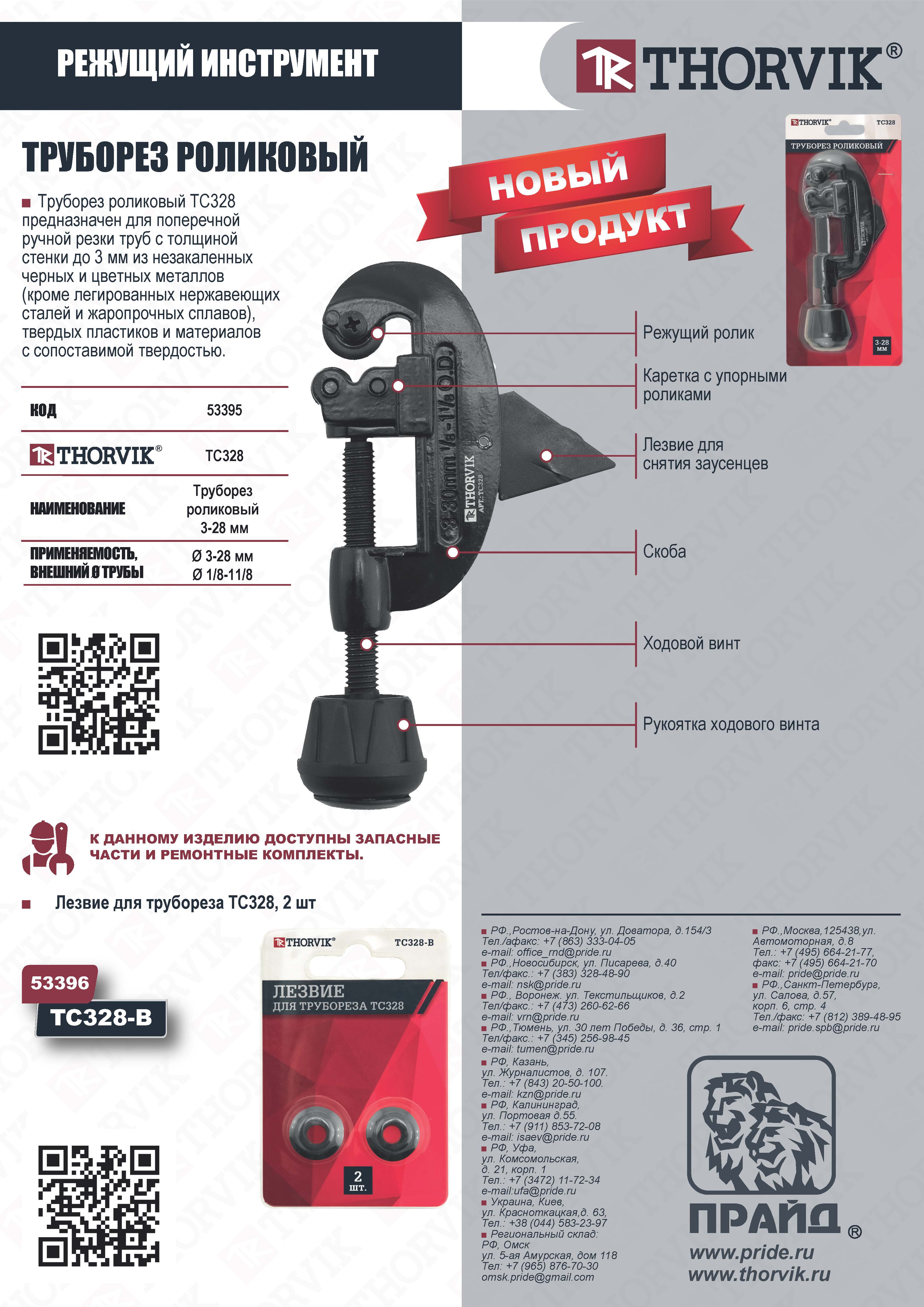 TC328 Труборез роликовый 3-28 мм Thorvik