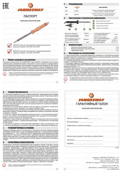 5.4 В случае обнаружения неисправности, Вы можете обратиться в региональные представительства или авторизованные сервисные центры торговых марок JONNESWAY®, OMBRA®, THORVIK®, CARBON®