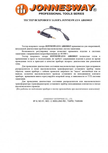 Тестер искрового зазора свечей зажигания. Tестер искрового зазора Jonnesway AR030015 полностью готов к применению и прост в эксплуатации, не требует удерживания изделия в руках во время проведения теста и пригоден в качестве прибора экспресс диагностики вне ремонтной зоны.