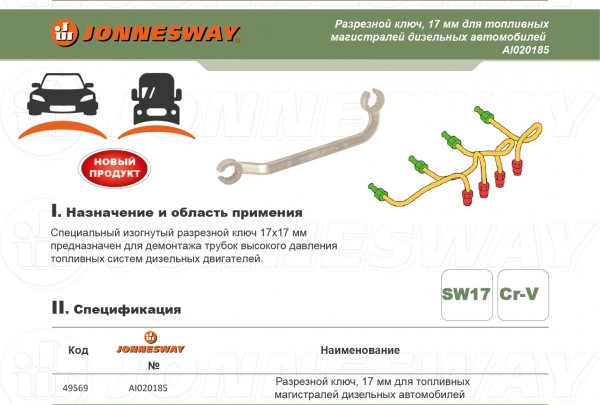 AI020185 Разрезной ключ 17 мм, для топливных магистралей дизельных автомобилей Jonnesway