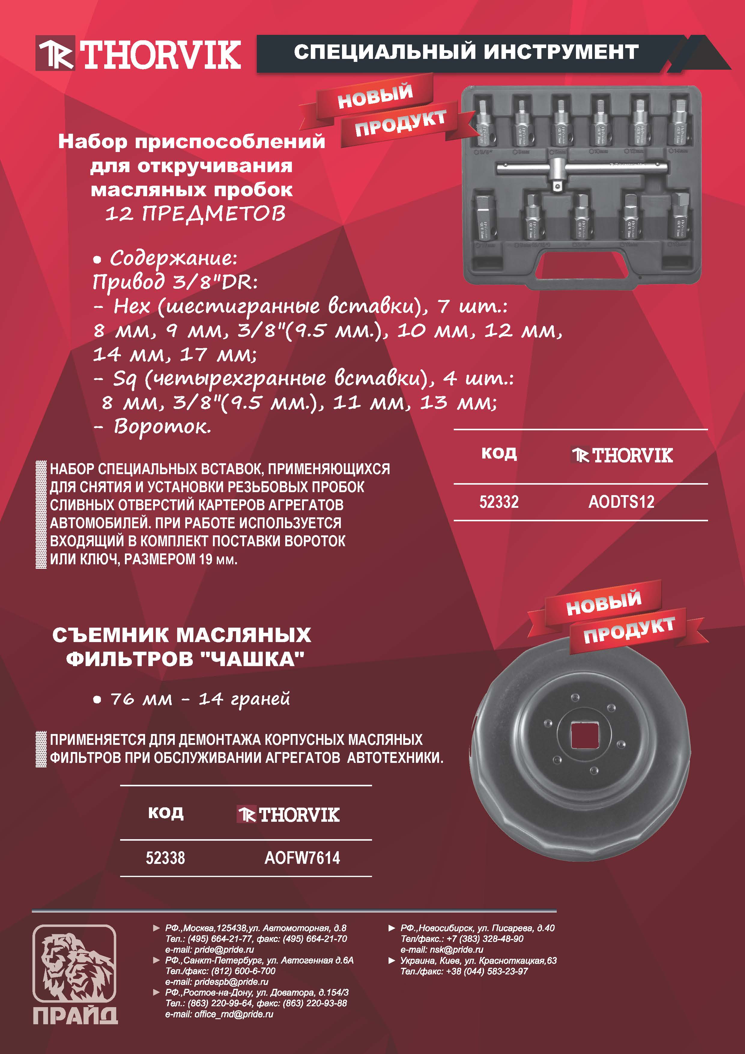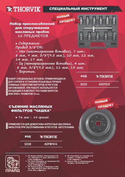 AODTS12 Набор приспособлений для откручивания масляных пробок, 12 предметов Thorvik