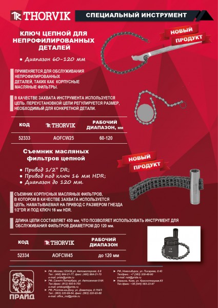 AOFCW45 Съемник масляных фильтров цепной с приводом 1/2''DR, 16 мм HDR, с диапазоном до 120 мм Thorvik