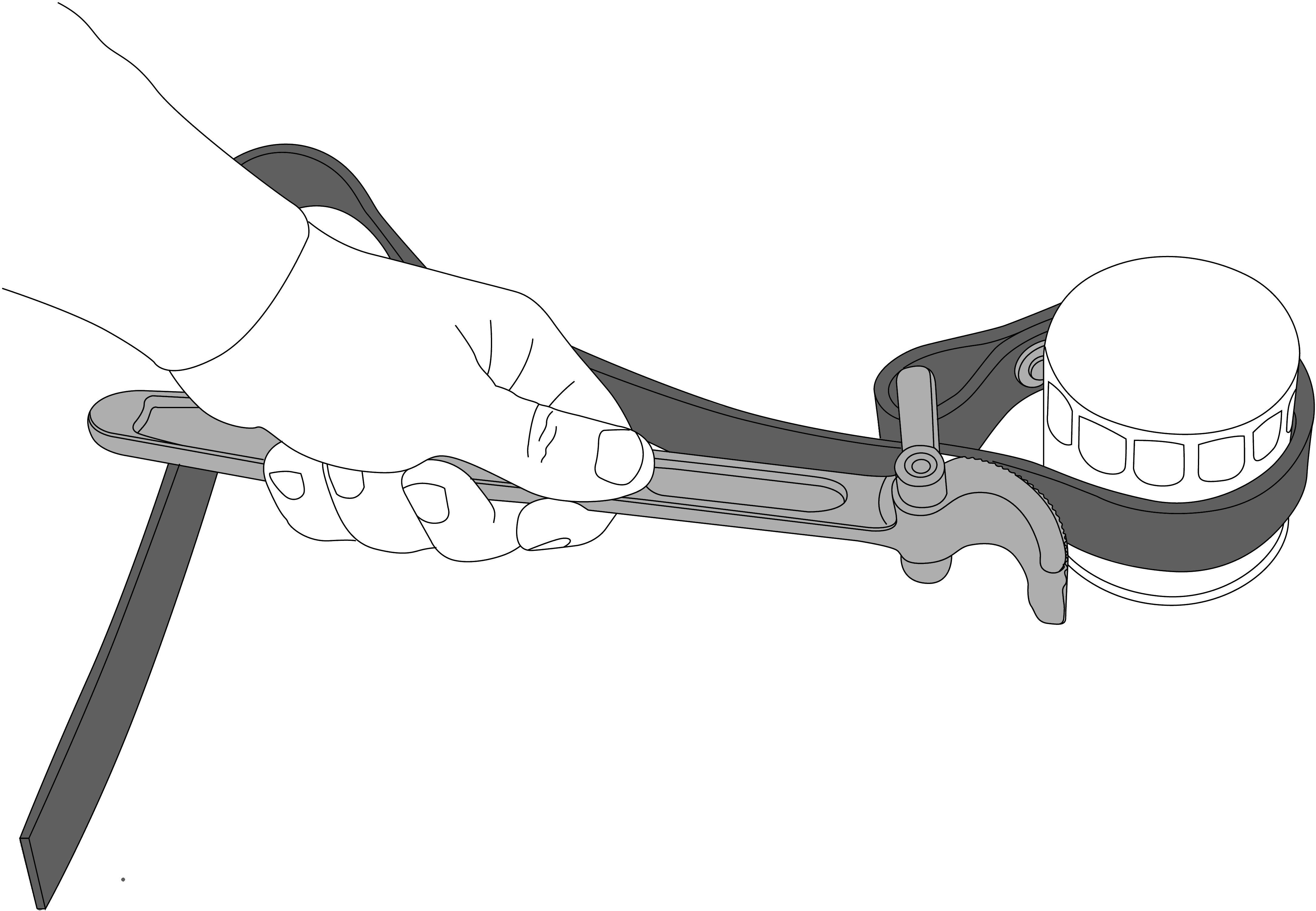 Ключ ременный для непрофилированных деталей с диапазоном до 220 мм. В качестве захвата инструмента используется затягивающийся в петлю ремень, изготовленный из специального, фрикционного материала.