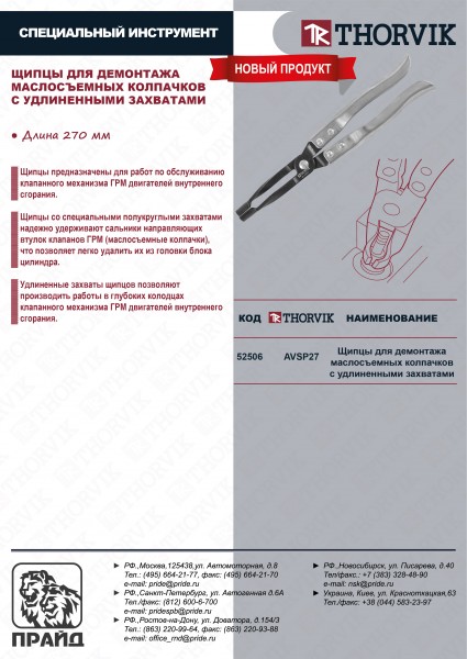 AVSP27 Щипцы для демонтажа маслосъемных колпачков с удлинёнными захватами, 270 мм Thorvik