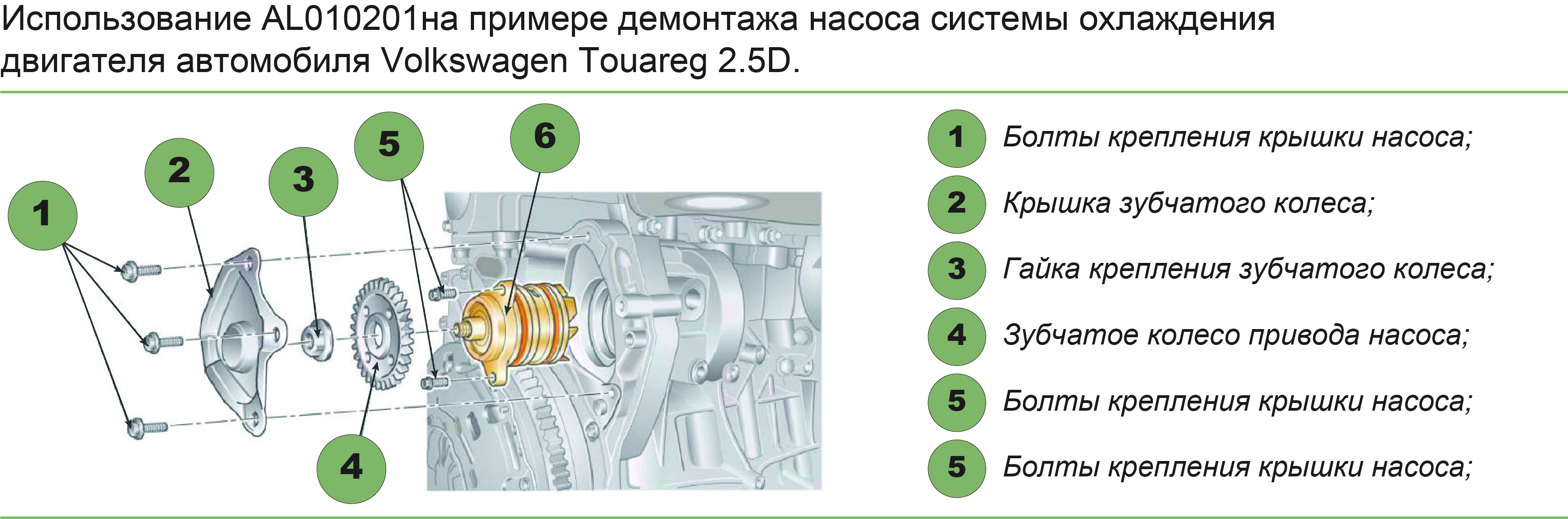 Комплект приспособлений используется для демонтажа насоса системы охлаждения