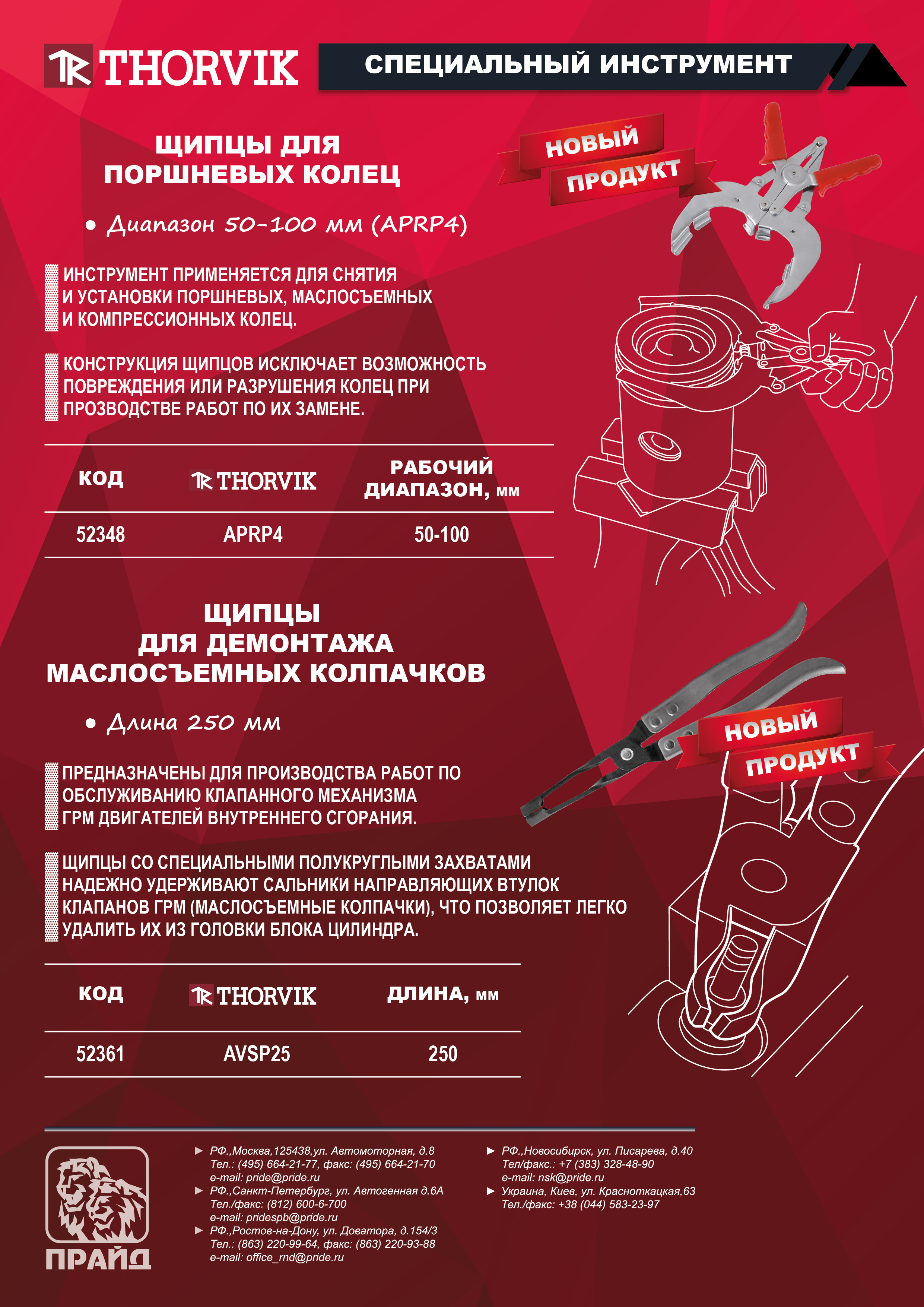 Thorvik AVSP25 Щипцы для демонтажа маслосъемных колпачков, 250 мм AVSP25