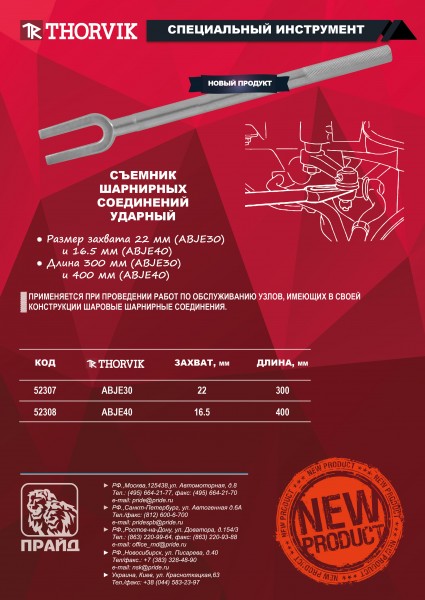 ABJE30 Съемник шарнирных соединений ударный с захватом 22 мм, 300 мм Thorvik