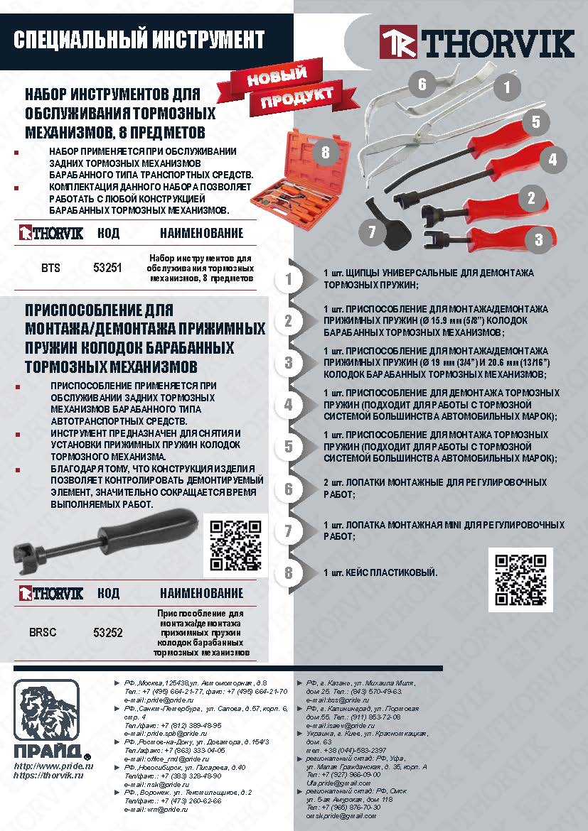 Thorvik BTS Набор инструментов для обслуживания тормозных механизмов, 8 предметов BTS