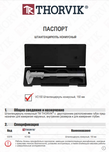 VC150 Штангенциркуль нониусный, 150 мм Thorvik