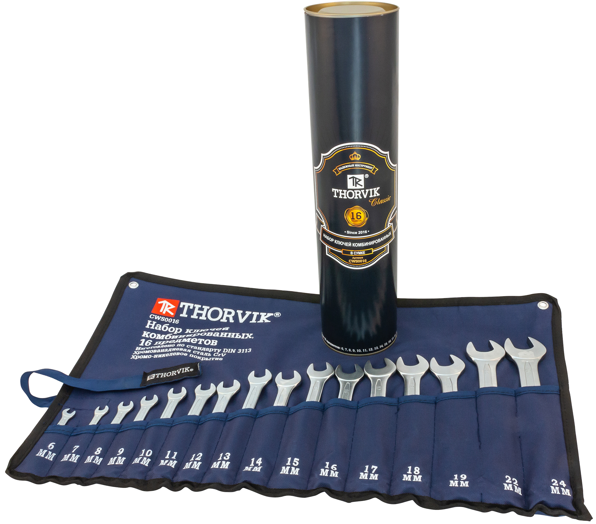 Представляем вам новинку бренда Торвик - набор ключей комбинированных в тубусе, 16 предметов. Артикул CWS0016T , размеры ключей: 6-19, 22, 24 мм.
