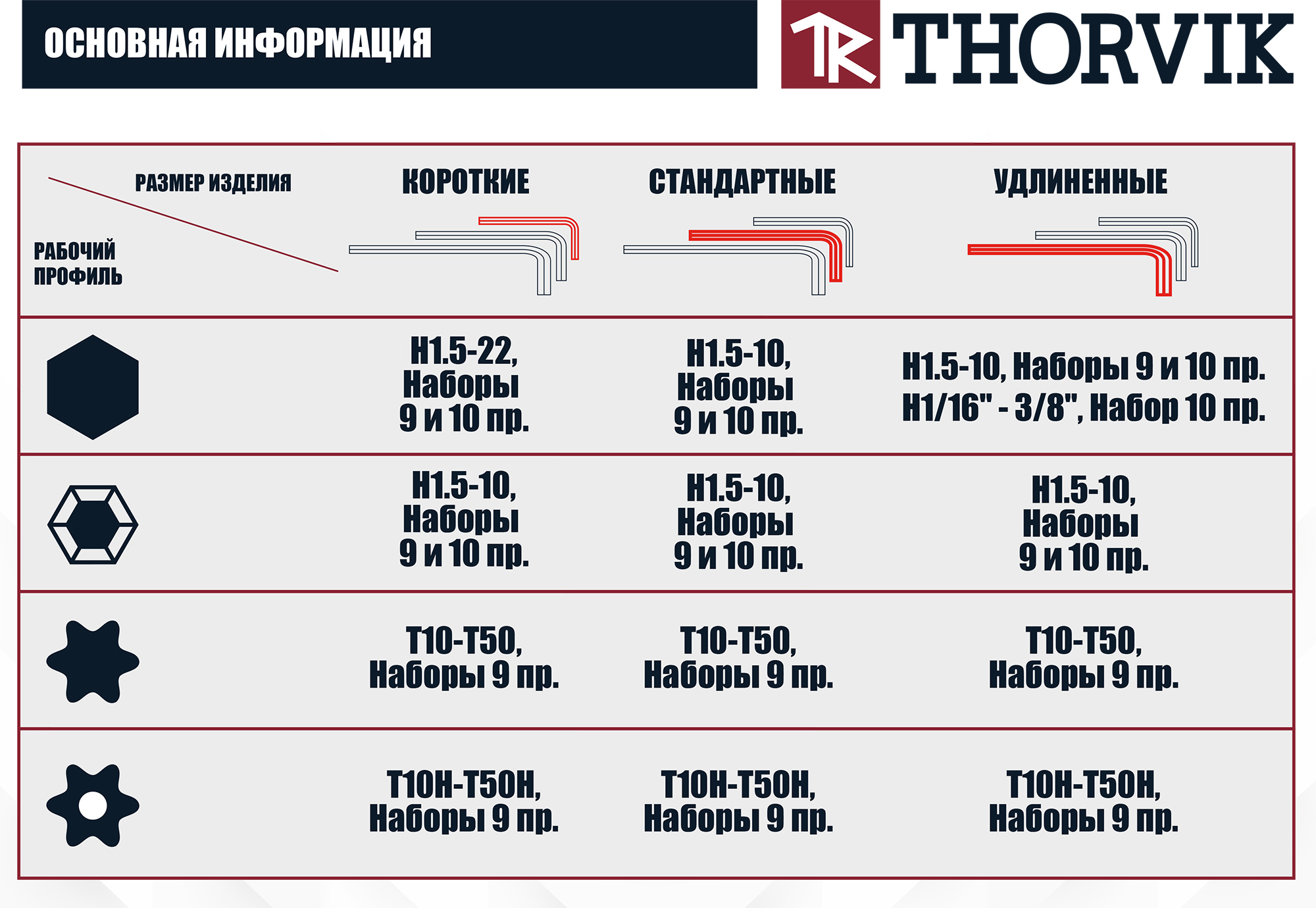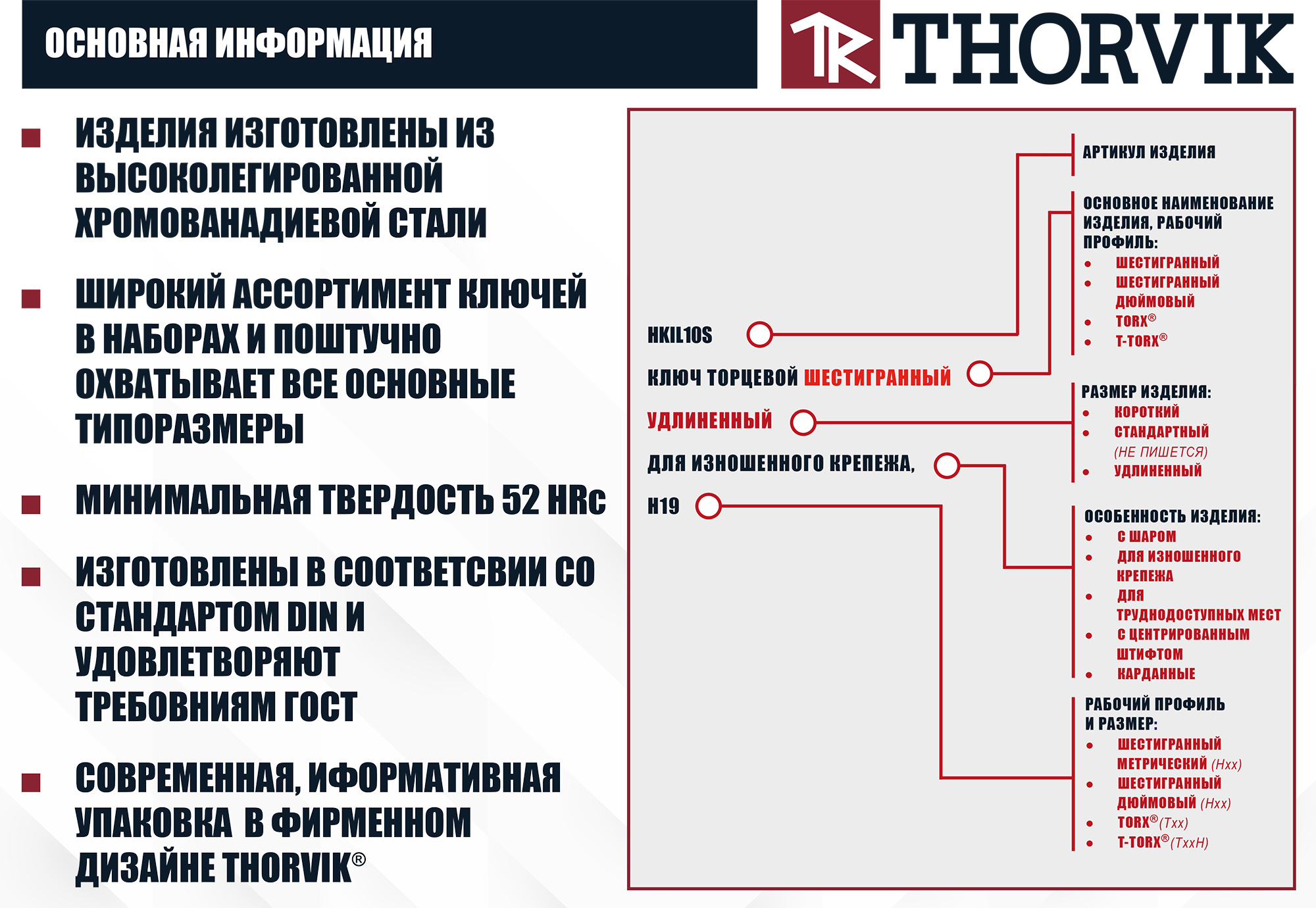 На склад нашей компании поступила огромная (!) линейка торцевых ключей ТМ Thorvik. Широкий диапазон ключей в наборах и поштучно охватывает все основные рабочие профили и типоразмеры. Изделия изготовлены из высоколегированной хромованадиевой стали, имеют качественную финишную обработку и информативную маркировку. Наборы ключей упакованы в удобный, функциональный блистер с дизайном в стиле торговой марки Thorvik..